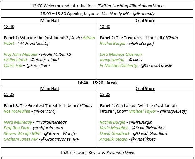 | Blue Labour Manchester - the speaking panels |